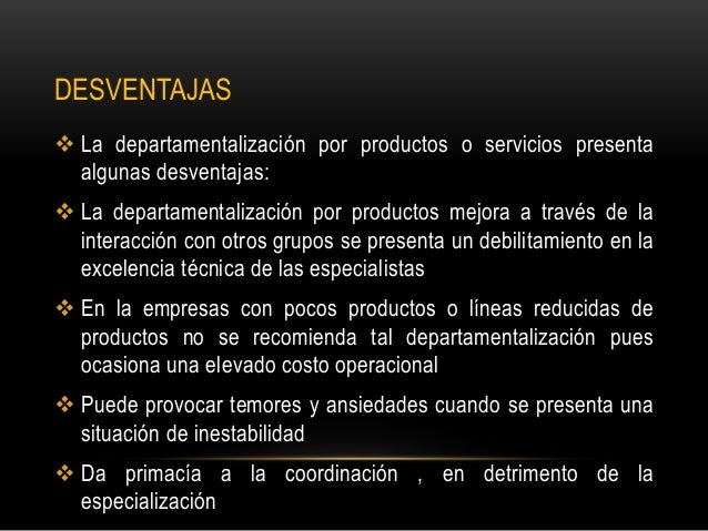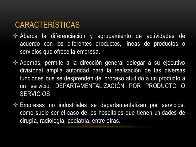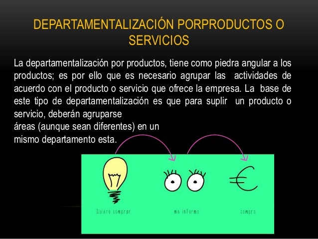 - En razón de los productos: Generalmente es en empresas que tiene una gran variedad de productos, estas empresas se organizan de acuerdo al tipo de producto un ejemplo muy común de este tipo de departamentalización son las tiendas de abarrotes, o las grandes cadenas comerciales de supermercados