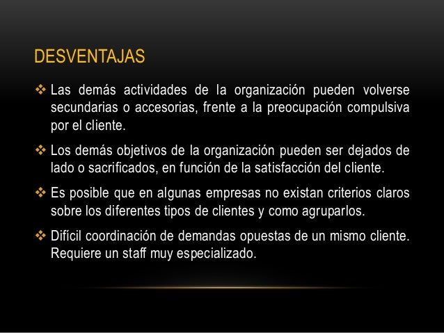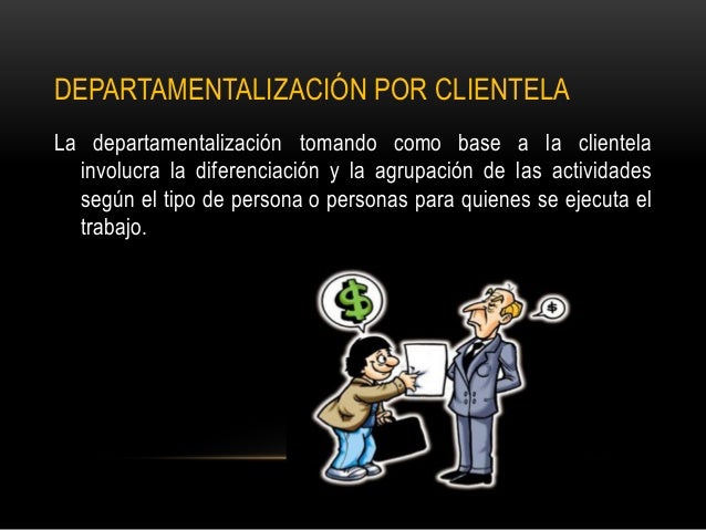 - En razón del cliente: La organizaciones de estructuran de acuerdo al tipo de cliente un ejemplo muy claro son las tiendas departamentales.